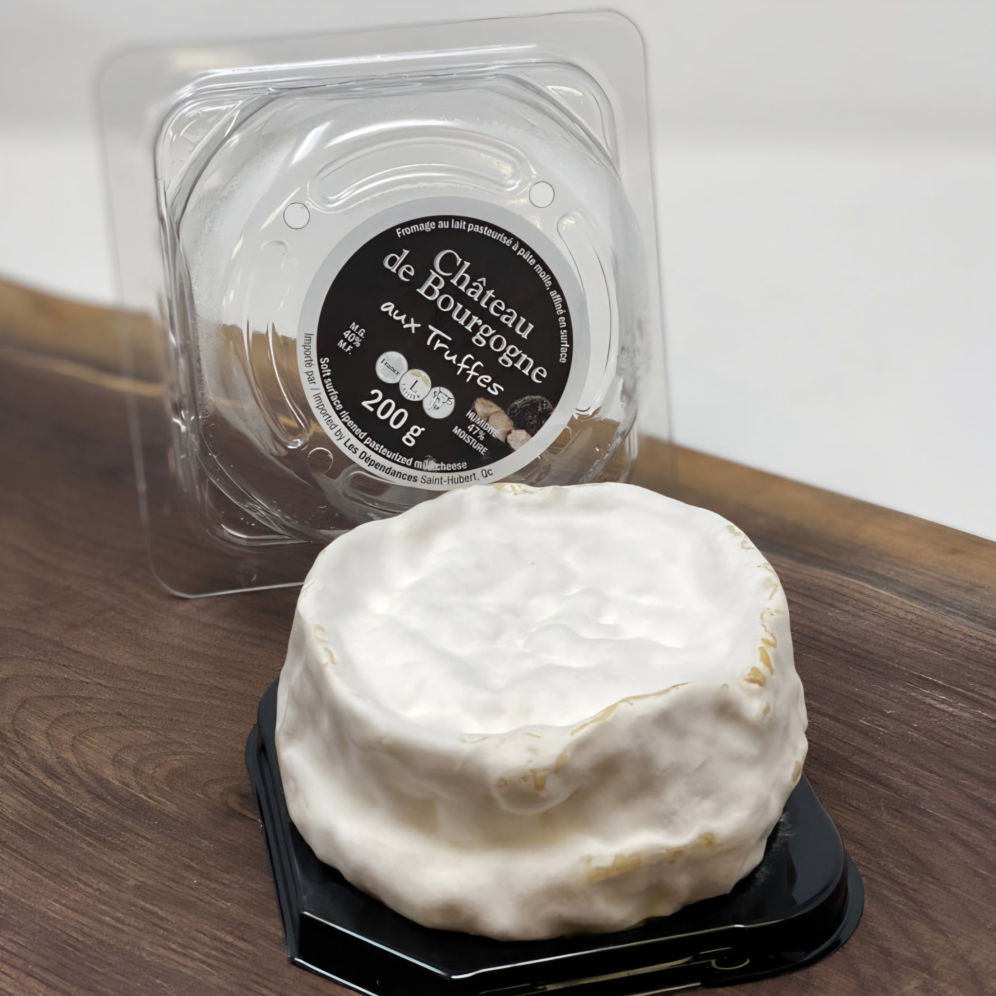 The extremely popular Château de Bourgogne aux Truffes Cheese has been taken up another notch. The thick bloomy rind is home to a very decadent, buttery, triple creme paste and a streak of beautiful black truffle down the middle.