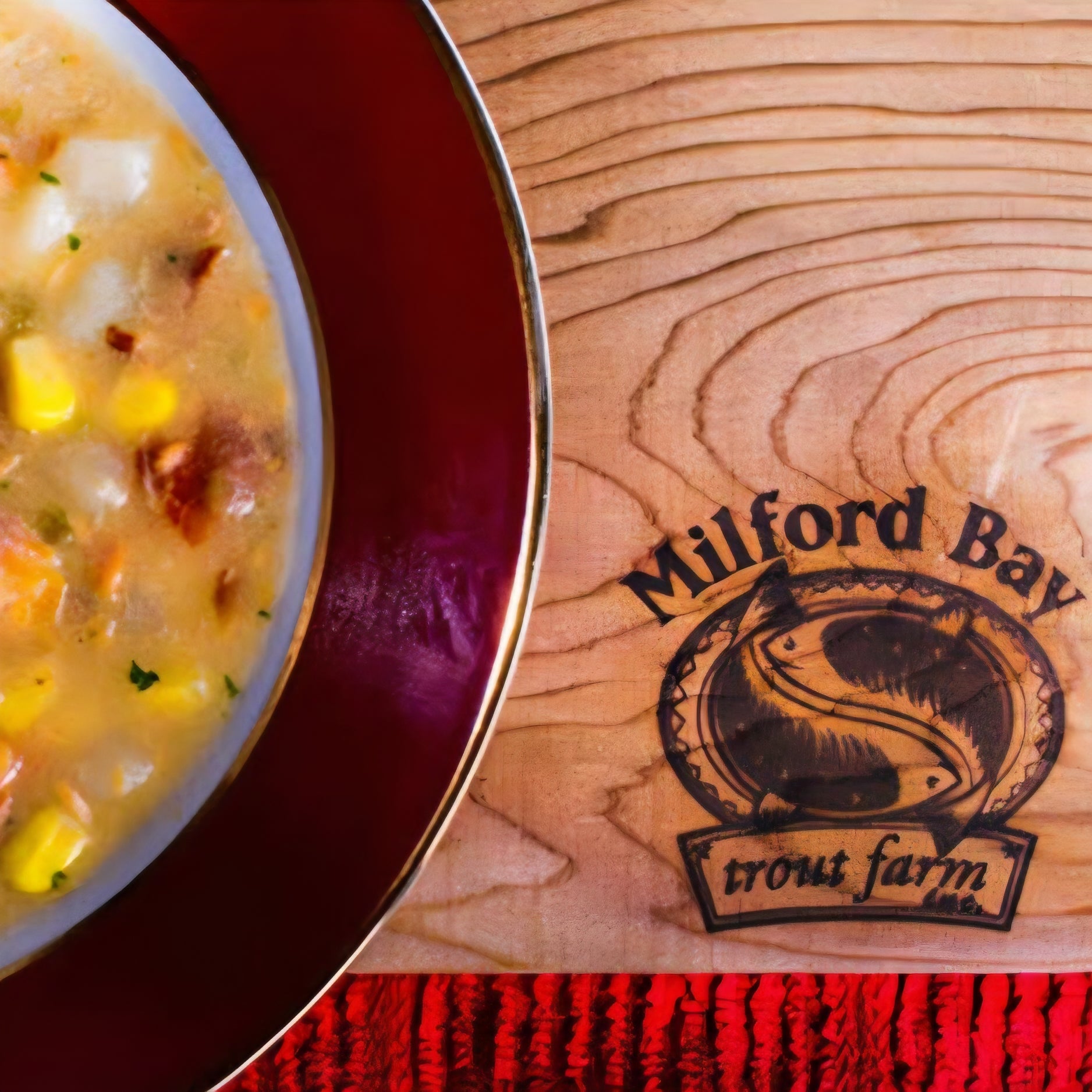 Delicious and hearty traditional chowder containing a bundle of vegetables, highlighted with a unique smoked trout twist, guaranteed to satisfy!