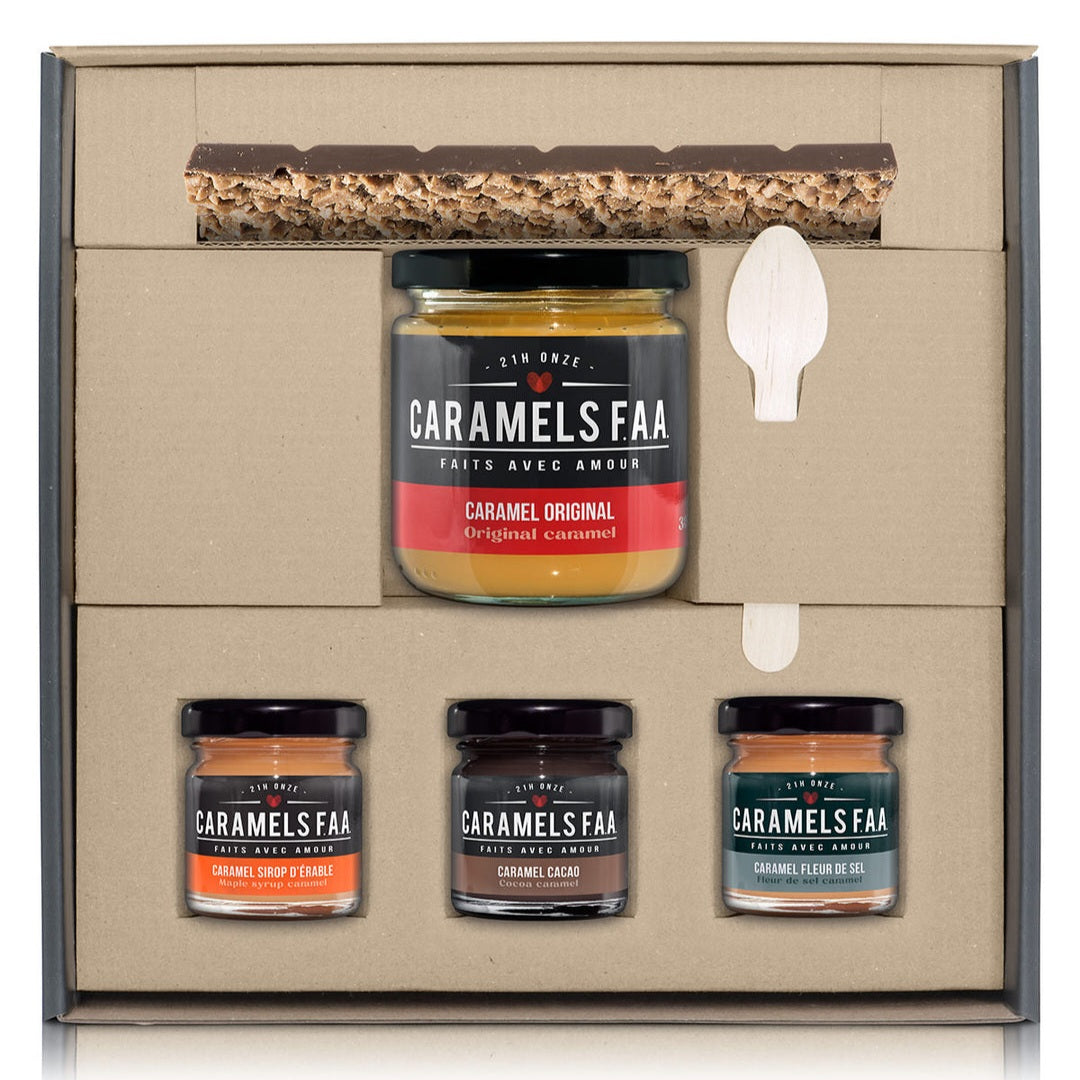 CARAMELS FAA is a local company led by two entrepreneurs from Quebec dedicated to the manufacture and distribution of high-end and artisanal caramel spread . This delight brings a moment filled with love to those who taste it, who offer it or who receive it. CARAMELS FAA is proud to create products without preservatives and to be officially certified Foods prepared in Quebec.